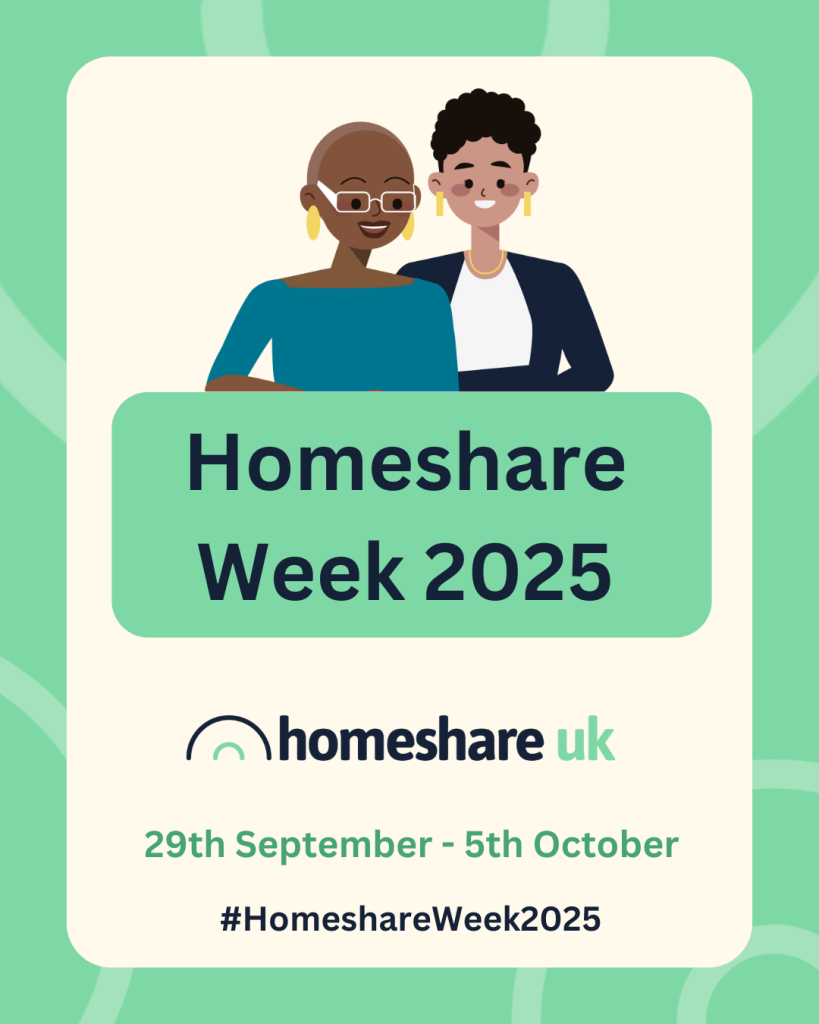 Homeshare Week is bookended by International Day of Older Persons (1 October 2025) and Silver Sunday (5 October 2025), both of which encourage older people to build social connections and enjoy community activities. During the week, Homeshare UK will share stories online to show how Homeshare fosters social connection through shared activities – from a cup of tea at home to community outings.